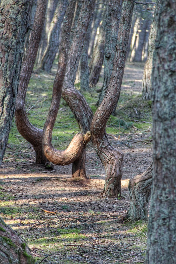 Стволы всех сосен изогнуты самым непостижимым образом: они изгибаются волнами, завиваются в спирали, образуют круги, как будто на самом деле участвуют в мистическом танце.