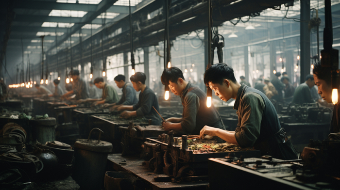 Завод. Рабочая смена. Картинки сгенерированы нейросетью MidJourney специально для статьи Уже за***ся делать картинки