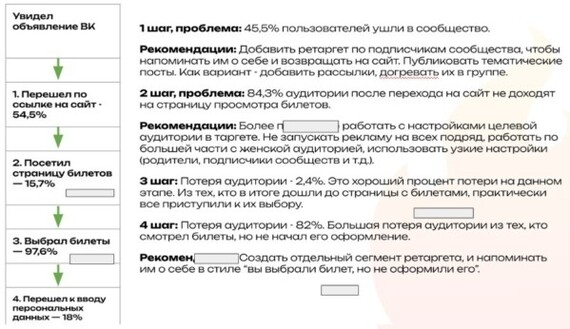 Но не всегда клиенты публикуют классный контент под нужды своей аудитории. В таких случаях мы проводим аудит шагов воронки и даем рекомендации, в том числе и по контенту.