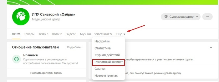 С этой особенностью познакомился в таргете по очередному клиенту - ЛПУ Санаторий «Озёры» в Коломенском районе . Пока осуществляем настройку так: заходим через аккаунт человека, который пополнил и запускаем рекламу. Затем перейдем на нормальные рельсы и сделаем кабинет бизнеса.