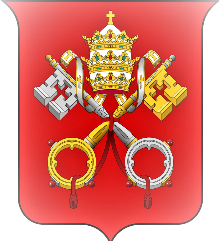 А это герб Ватикана, включающий изображение папской тиары и перекрещенных ключей Царства Небесного.