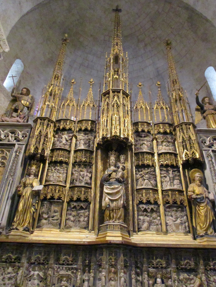 Ко входу в кафедральный собор по настоялельным просьбам некоторых пришлось доехать всё на том же экскурсионном паравозике. Вход платный, однако лицам старше 65 лет скидка, и юноша продающий билеты вполне удовлетворился социальной картой моей тёти, хотя поначалу спрашивал паспорт. А их то паспорта, мы решили не брать. Так что наша подмосковная социальная карта, она и в Испании пригодилась.