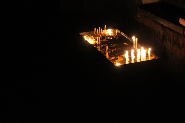 Мистическая картина - стекол в окнах нет, дверей нет, заходишь внутрь, а там свечи горят и никого