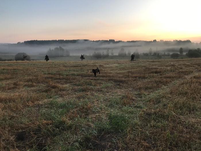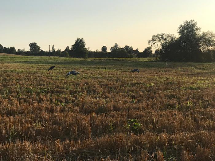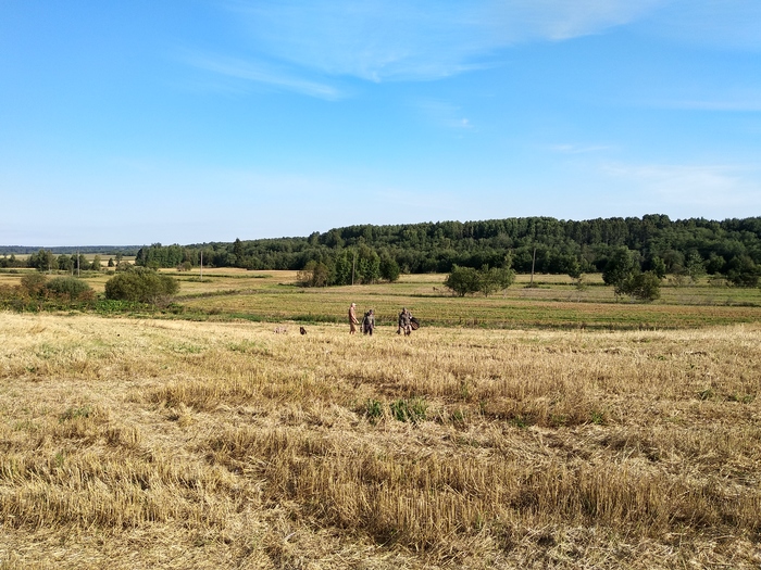 Недолгая дорога, остановка на краю поля, делимся на команды, распределяем чучела и выходим по заранее обговоренным точкам наслаждаясь ароматами зерновых культур, свежестью августовского утра и прекрасными видами.