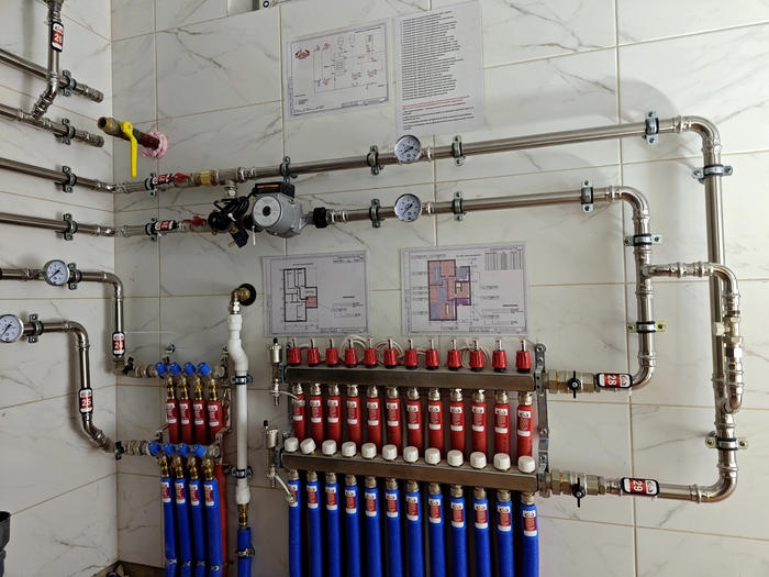 В новогодние праздники буду выкладывать то, что физически не успел в прошлом году. Вашему вниманию котельная, где трубы отопления из нержавейки Vier, а водоснабжения - полипропилен.