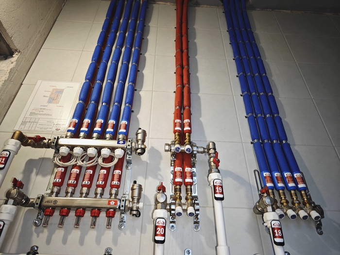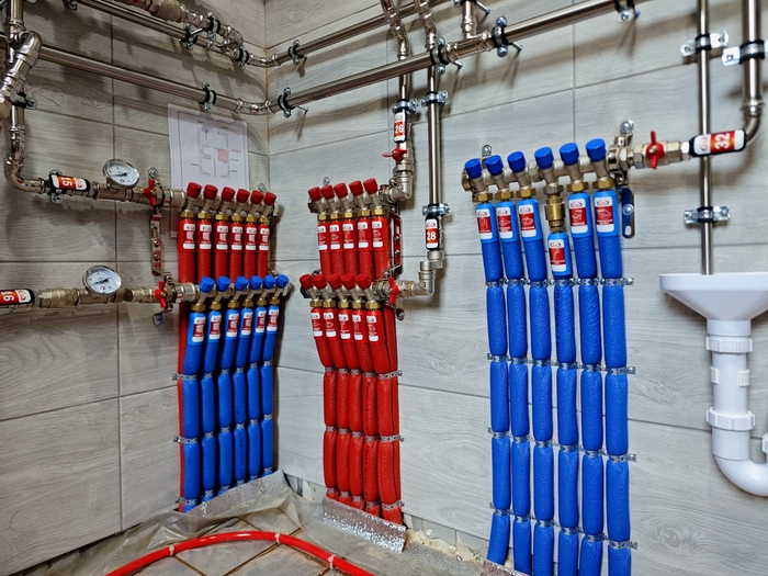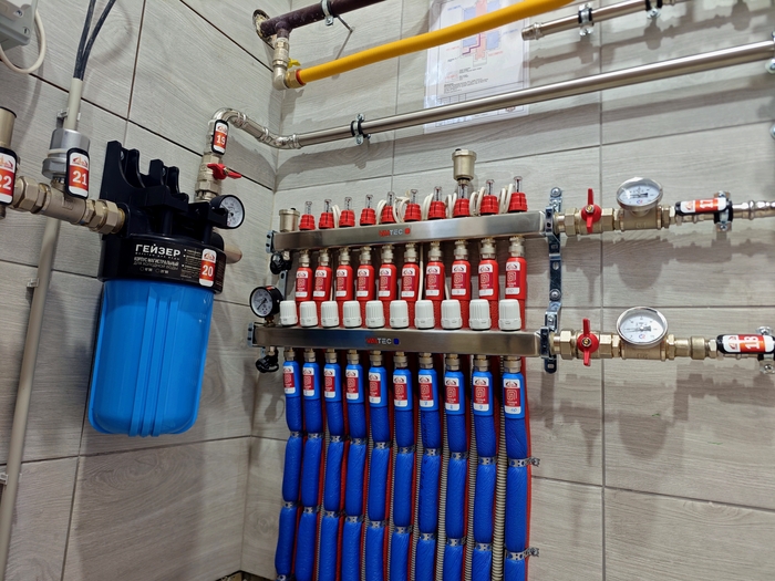 Тут у нас редкий случай, когда заказчик настоял, чтобы коллектор водоснабжения санузла второго этажа был смонтирован именно там.