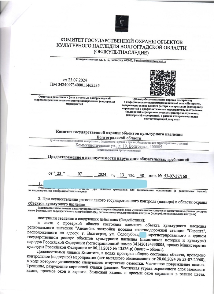 Живу себе никого не трогаю, и тут приходит письмо аж из "Комитета государственной охраны культурного наследия", в котором они мне говорят что я плохо слежу за своим домом.