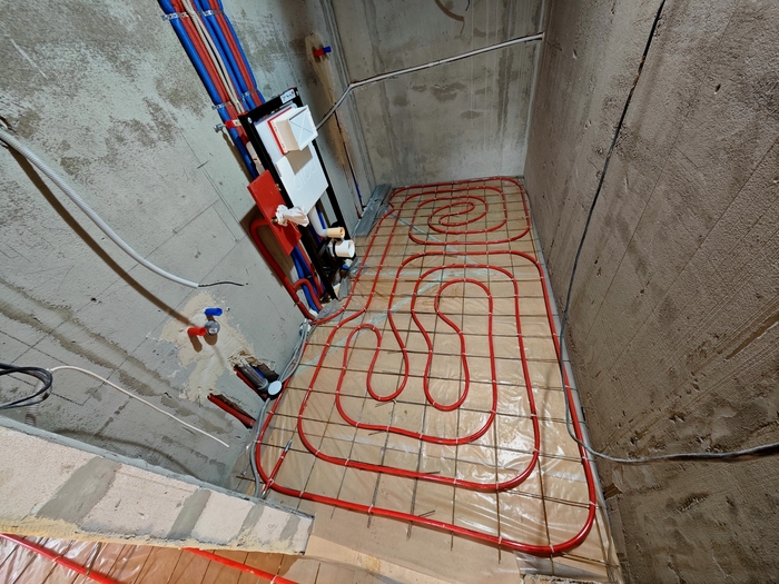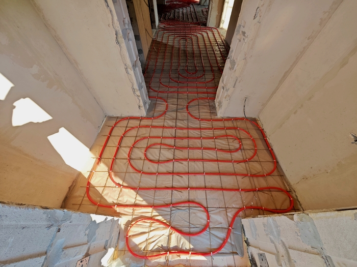 Выполнен монтаж теплых полов и водоснабжения с канализацией в двухэтажном таунхаусе площадью 120кв.м. Котельная будет во второй части.