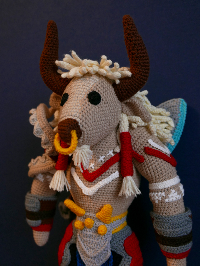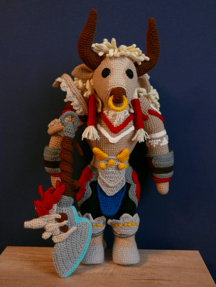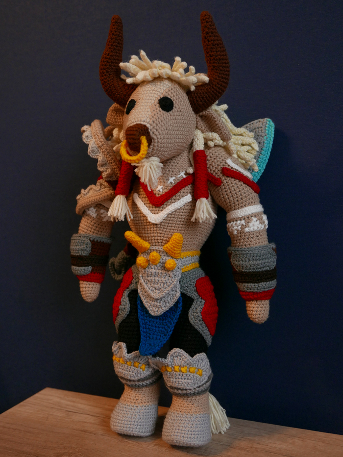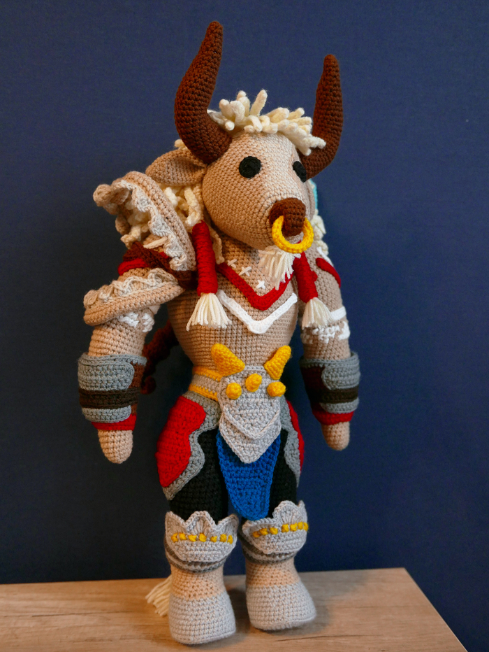 Высота Таурена 40см. Имеет проволочный каркас. Шляпа на завязках. Удочка крепится к спине при помощи магнитов.
