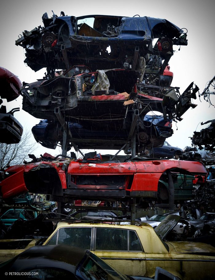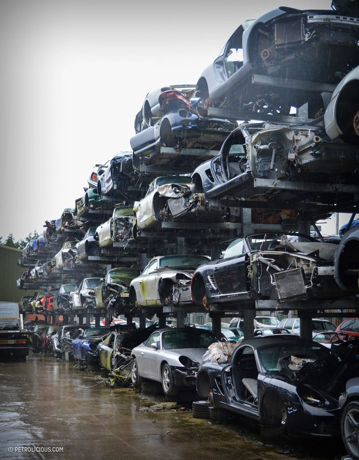 Зрелище не из приятных, особенно для фанатов автомобилей. Подавляющее большинство автомобилей Porsche, причем именно Boxter, но попадались разные модели, начиная от Ford и заканчивая кузовным ателье Pininfarina.