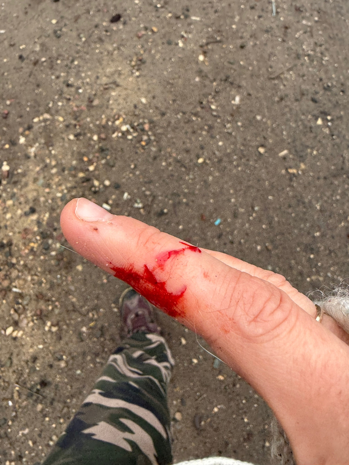 Недовольное освобождением животное цапнуло хозяйку за палец.