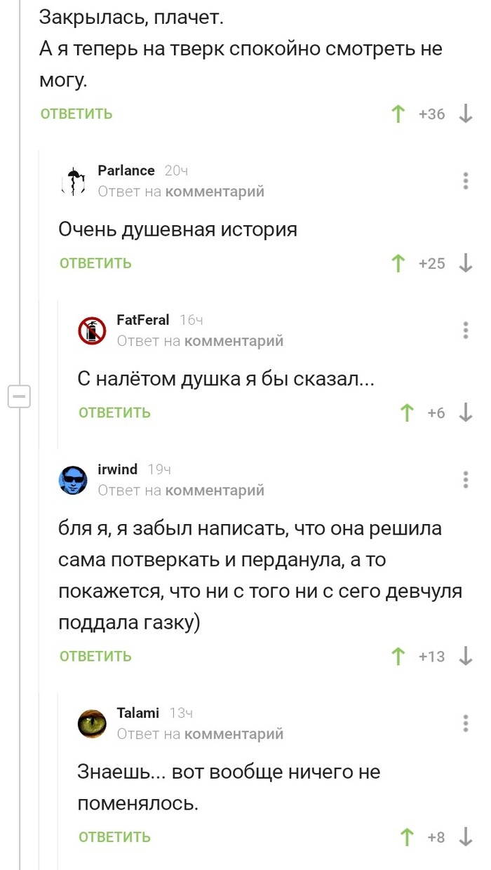 16 TiNA93uo Очень душевная история про тверк 2 года назад #comment_273055486 Показать полностью 3 Скриншот Комментарии на Пикабу Тверк Длиннопост Мат Ещё 0