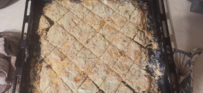 3. Прикладываем на противень, смазываем яйцом и отправляем в духовку на 20 минут при 200 градусах