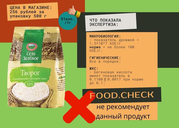 Творог Село Зеленое 5%. Село Зеленое мне попадалось на обзор единожды, когда речь шла про молоко. Тогда Село Зеленое стало лидером в пятерке испытуемых образцов, показав высшее качество продукции. Давайте узнаем, что не так с результатами экспертизы творога: