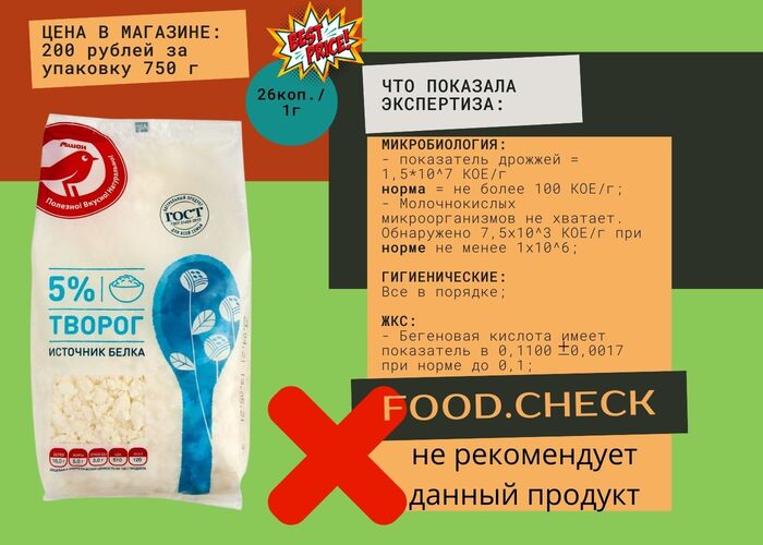 Однако не только производители виноваты в появлении дрожжей и плесени в твороге. Продукты могли неправильно храниться в торговых сетях. Сроки годности рассчитываются с учетом хранения творога при температуре от +2 до +6°C. Однако если в магазине условия хранения не соблюдались, грибки и бактерии начинали быстро размножаться. Эксперты производили закупку творога в крупных столичных супермаркетах. Всем этим торговым организациям направлены запросы с требованием подтвердить соблюдение условий хранения. Аналогичные запросы направляются и производителям, в чьих продуктах выявлены несоответствия. Источник.