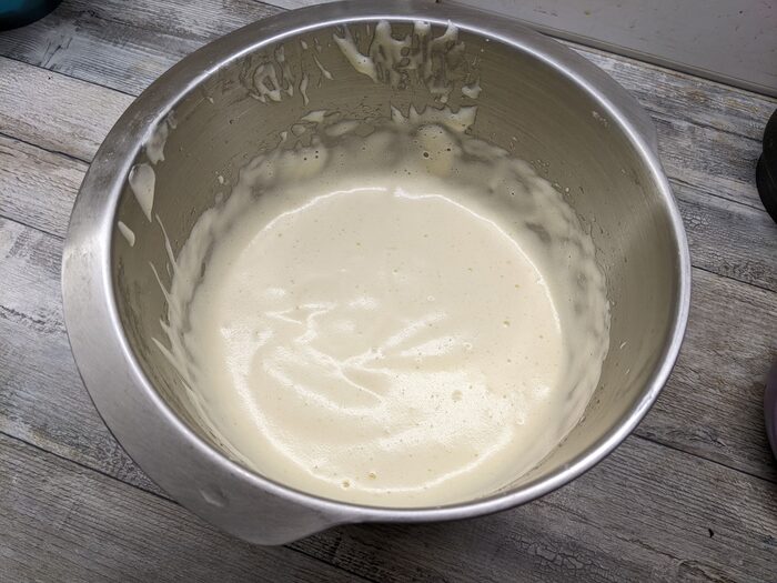 Но если вы, как я, взбивали яйца в большой деже, а творог протрали в маленьком кувшинчике, это может быть неудобно. Поэтому я добавляю к творогу немножко яиц - просто отливаю часть - и взбиваю еще раз все вместе блендером, до состояния крема.