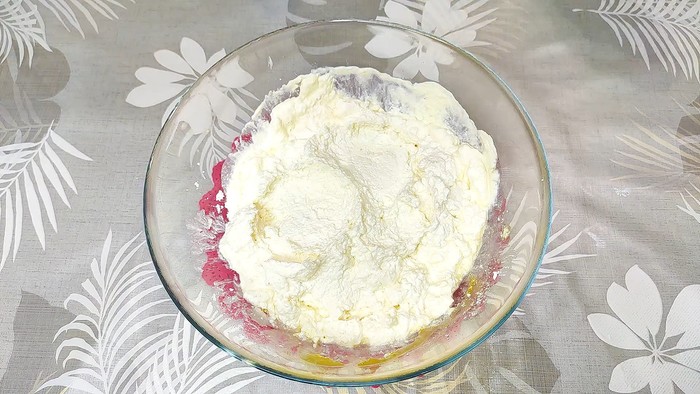 Подготовим начинку, в творог добавляем желток, всыпаем сахарную пудру, крахмал, добавляем сметану и хорошо перетереть вилкой до однородной массы.