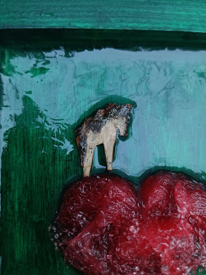 Это новогодняя серия картин с Лошадкой из бересты. Все картины форматом 13х13 см, написаны на деревянном холсте из березы. А мармеладка в виде сердечка сделана из секретного ингредиента 🤫
