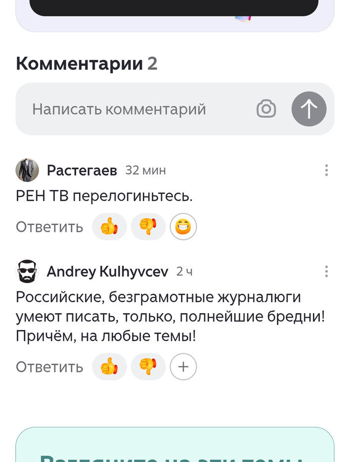 Федеральный канал в дзене решил отобрать бабок(во всех смыслах) у рентв. Хотя один из двух комментаторов так не считает.