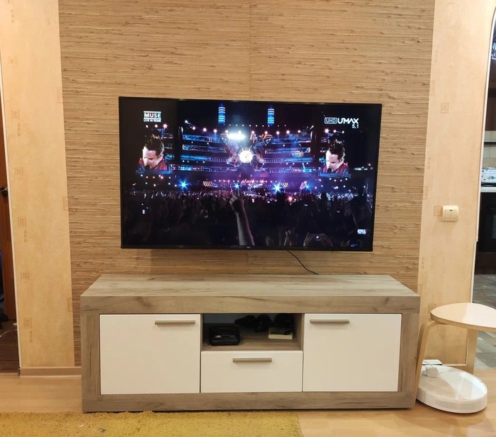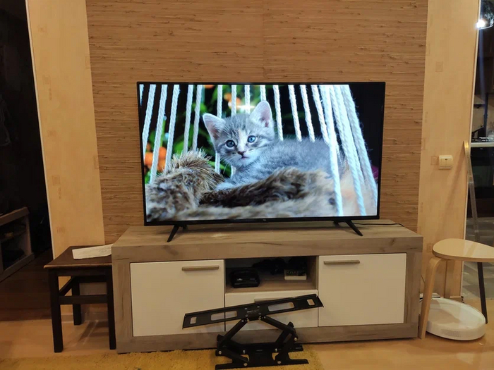 Приехал ТВ и кронштейн. Вот честно где-то час смотрели видео с YouTube) После старых телевизоров и маленьких мониторов, были прям в восторге...
