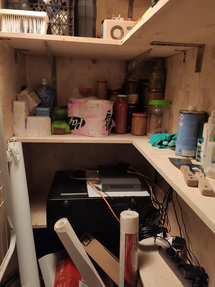 А пока убрали ПК в кладовку. В идеале все кабели питания ТВ и сопутствующего оборудования хотели подключать к сетевому фильтру в кладовке.