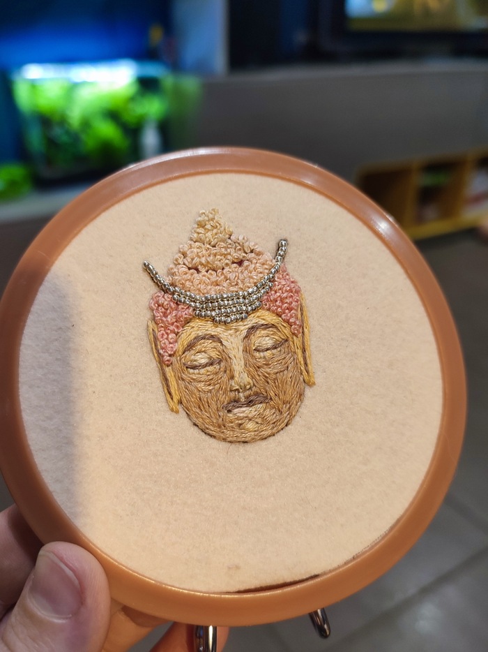 Брошь вышита гладью по рисунку подруги, это Будда, если кто не признал)