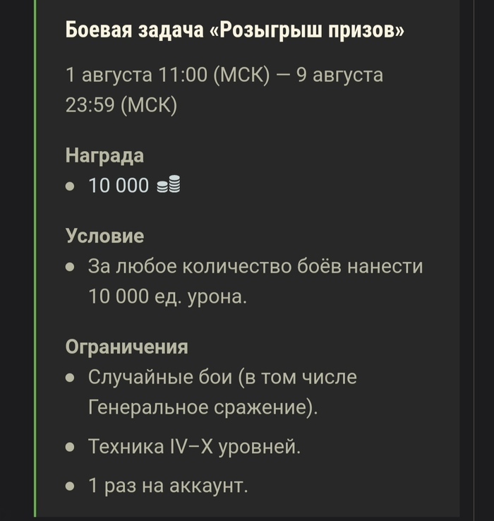 Так так так... И всего навсего надо набить 10.000 урона, пфф фигня. Иду в игру, набиваю, жду розыгрыша. Что может пойти не так? Как оказалось всё.