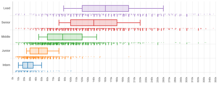 Не много отвлеклись, вернемся к зарплатам. Вот две картинки, первая по основным ИТ специализациям: