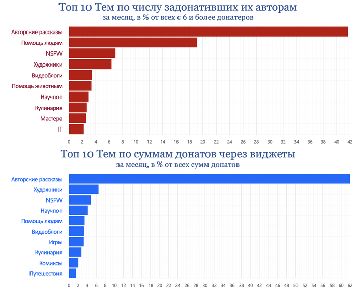 Получивших хотя бы один донат стало 2 594 (на 27 больше, чем в предыдущем месяце). В общей сложности число задонативших всем пикабушникам с донатами составило 65 870 человек (на 2 577 больше предыдущего месяца).