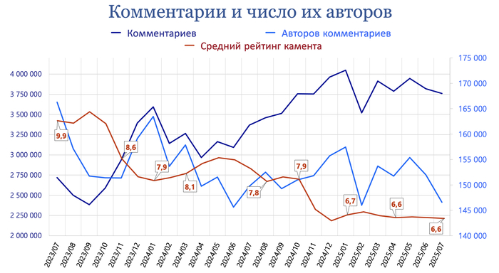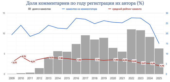 За все время авторов комментариев стало 2 029 696 (на 10 152 больше к предыдущему месяцу).