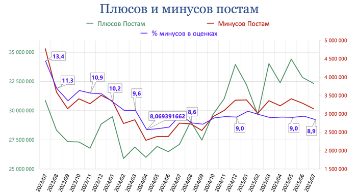 Постов - Баянов - 3 335 (2,8%, на 6% больше к предыдущему месяцу).