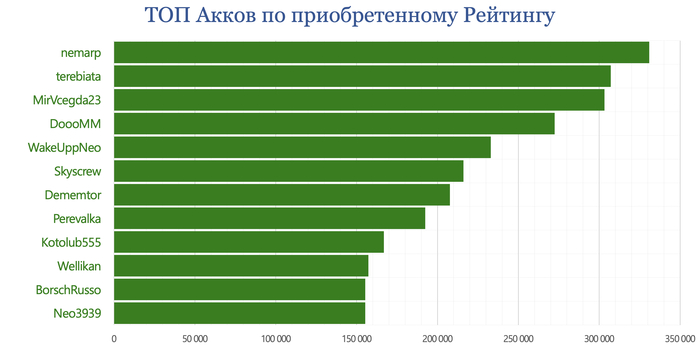 maibeben - постов опубликовано 645, рейтинг за них 24 058; autopicabu - постов 641, рейтинг за них 50 194; Stroyka1111 - постов 456, рейтинг 3 395; Zolotieruki - постов 456, рейтинг 11 524; SuperKulinar - постов 455, рейтинг 5 579; Avtovoditel - постов 446, рейтинг 27 324; Kotolub555 - постов 422, рейтинг 173 796; DoooMM - постов 373, рейтинг 288 940; akatosh199512 - постов 372, рейтинг 60 721; Shiraori - постов 372, рейтинг 41 442.