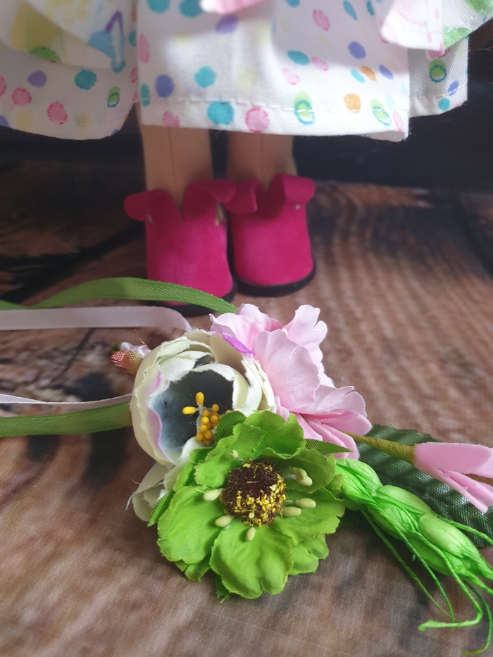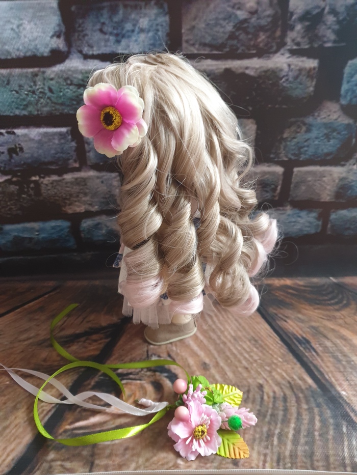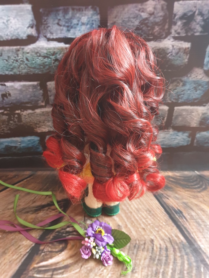 Чтобы добиться нужного цвета волос - смешала русый и шоколадный цвета шерсти.