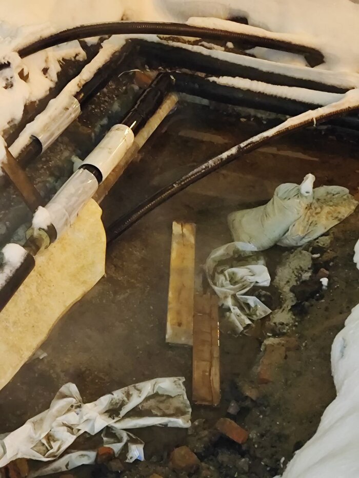 Трубы переодически прорывает, из котлована идёт пар и там стоит вода.