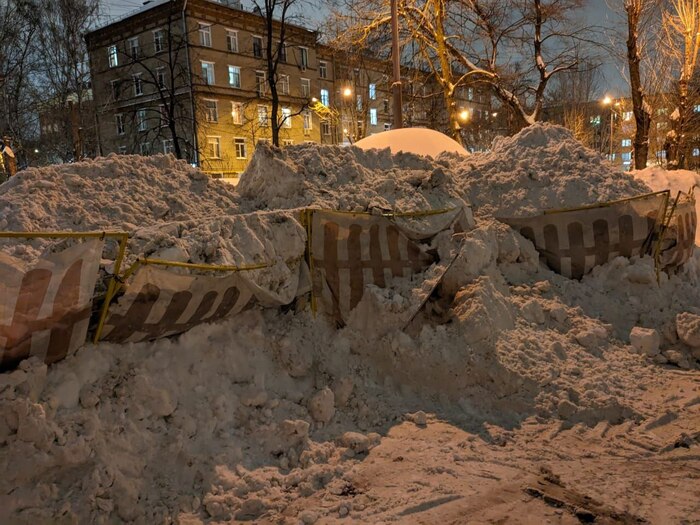 10) Жилищник же очень круто придумал складировать на территории Археологов-Моэковцев снежные горы.