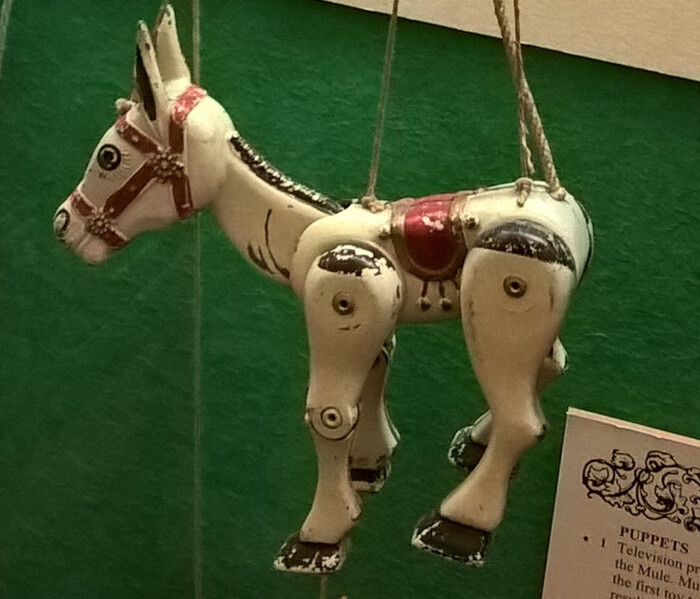 Марионетка маленького деревянного мула была сделана для номера, где клоун пытался учить его различным трюках, но упрямый безымянный мул всячески сопротивлялся дрессировке. Особого успеха номер не имел, и вскоре мул отправился на гвоздик в чулане, где и провисел больше десяти лет.