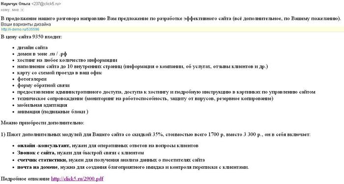 Итак, я имею свой маленький бизнес, у меня нет рекламы и своего сайта. Основной поток заказчиков - сарафанное радио. Не могу точно сказать, как они (telecom media) нашли меня и мои контакты, но предполагаю, что я продавал что-то из оборудования на всем известном сайте, дабы обновить и увеличить мощности. Было пару холодных звонков с предложением их услуг, но я не предавал этому значения, так как нужды в сайте не было. Начал задумываться о сайте, когда клиенты стали часто о нем спрашивать и отвалилось пару хороших заказов. Решено - нужен сайт! И о чудо, очередной звонок от Телеком медиа. Мы пообщались с девушкой, она отправила на почту три ценовые категории типа эконом, стандарт и премиум, с кучей вариантов у каждой категории. Каждый вариант был уже с интеграцией моей тематики от текста до картинок. Все сайты были современные, но в каждом я видел тупо шаблон, объясню, они были все настолько шаблонны, что каждый был похож на сайты однодневки или сайт одного товара. Наверняка видели, например, продажа копии знаменитых часов или кредитная карта нож, ну в общем суть ясна)) Да, при этом и ценник на сайт под ключ в этих трех группах был не большой - эконом 5800р, стандарт 9800р, премиум 15100р. Кстати отличия в этих трех группах, только в добавлении анимации в более дорогих шаблонах (появляющиеся, выезжающие блоки с разных углов). Это предистория))