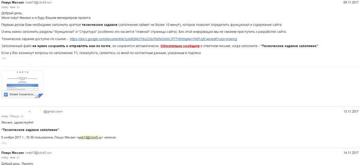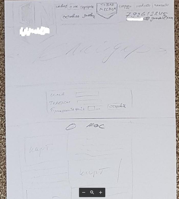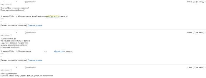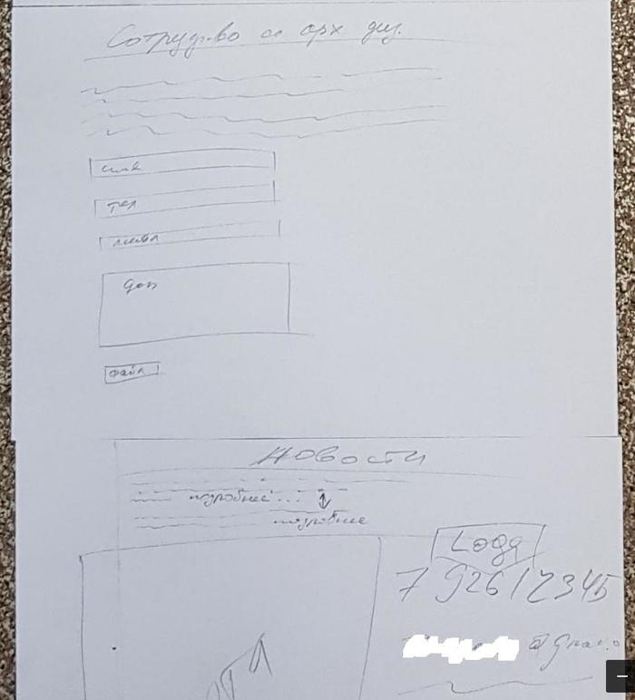 По итогу, беседа с ней проходила тоже по телефону (повторюсь записано), по почте это в основном - "Мне нужно связаться с вами, нужно открыть сайты, нужно пройтись по вашим сайтам и ТЗ..." не буду прикладывать скрины. Далее идет долгая и мучительная неделя непонимания желаний заказчика. Долгие телефонные разговоры, рассказ об очевидных вещах, океан воды в беседе. Вместе не можем понять, зачем же в компании нужны дизайнеры, и вообще похоже там программист, дизайнер, менеджер проекта - это один человек. Алла уверяет меня, что стоимость проекта посчитана не верно, все что я рассказываю, это абсолютно другие цифры, доп, доп, доп, доп и т.д.. В общем путем долгих консультаций - что такое сайт, а также убеждений в критически сложном строении моего сайта, я рисую сайт карандашом самостоятельно и отправляю, настоятельно прошу Аллу - "Не копировать мой рисунок, а согласно пожеланиям сделайте грамотный сайт!"