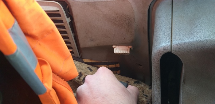 Но я приехал туда, что б прочитать его CAN шину. И тут трактор меня удивил, так как у него за сиденьем водителя есть знакомый всем автолюбителям, разъем OBD II, куда и выведена CAN шина.
