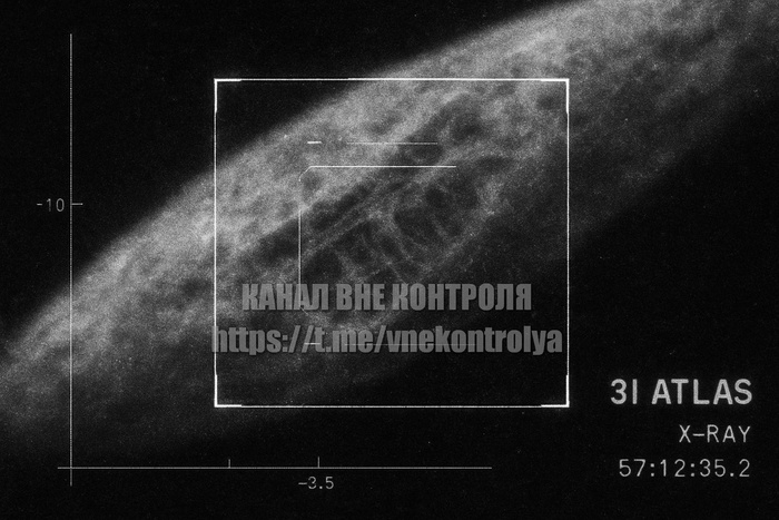 История со снимками выглядит особенно неоднозначно. В анонимных публикациях утверждалось, что на «рентгеновской спектральной обработке» ядра 3I ATLAS видны странные структуры. Некоторые пользователи рассматривали их как пересекающиеся линии, туннели и очертания, похожие на коммуникации или даже планировку города. Подобные утверждения моментально разошлись по социальным сетям, где обсуждения приобрели вирусный характер.