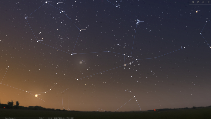 Но в предстоящую ночь Луна "съест" большинство звезд. Фаза Луны будет достаточно велика: 89%. Она будет яркая и расположена высоко в небе. Слабых звезд и метеоров увидеть не удастся. Но можно попытаться сделать фотоснимок Луны вблизи Плеяд — фотокамера обычно видит звезды лучше, чем человек. И такими снимками потом можно будет любоваться и опубликовать в соцсетях.