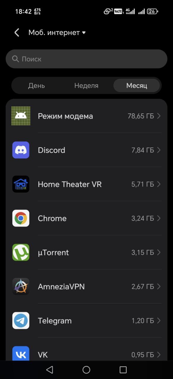 Судя по данным телефона (2 пикча) ВПН сожрал менее 3 гб.