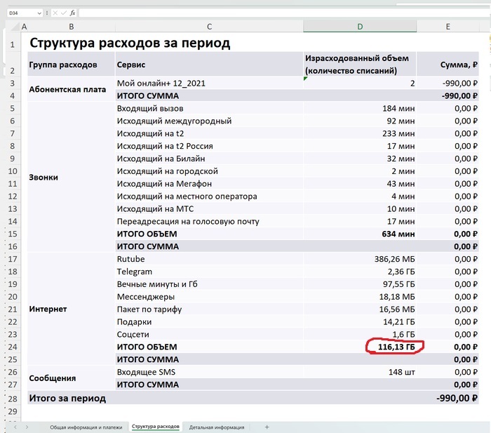 Оператор говорит, что видит потраченные 489 гБ (1 пикча), а к информации на третей доступа у них нет и быть не может. И рассказывает мне, что трафик могут жрать ВПН, дескать он не учитывается там у них и всё такое. Но не в четыре же раза больше. В общем якобы это технически невозможно всё это дело выяснить и всё виноват ВПН, а полномочия оператора - всё. Поняв, что ничего дельного от оператора не добьюсь, и пожелав ему здоровья (и он мне), я положил трубку.