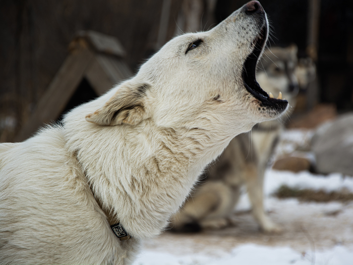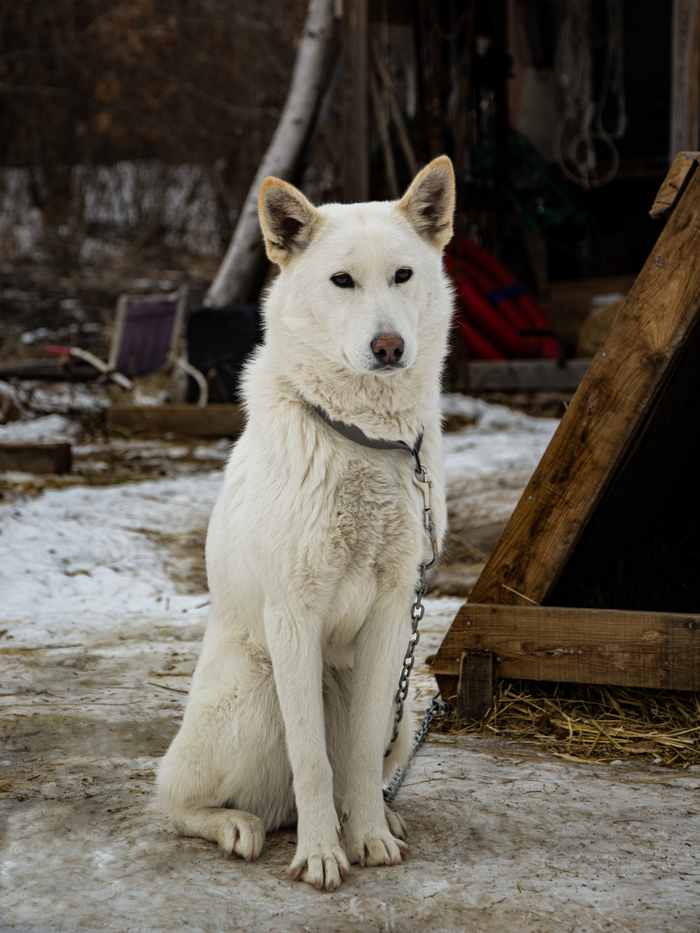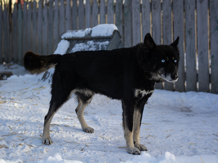 Новый сезон поездок на нартах. В этом году молодые собаки впервые пускаются в поход. Амур вырос очень большим и лохматым. Сильный пёс и очень активный.