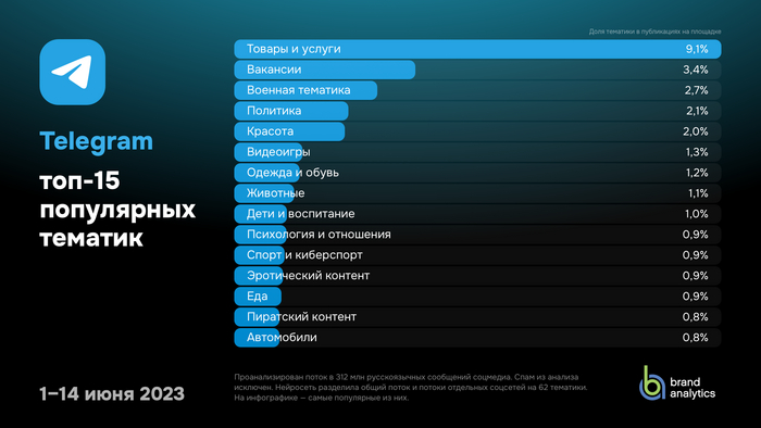 Нашел в интернете аналитику популярных тем, думаю кому-то будет интересно. Из неё можно понять в какой соц. сети, на что спрос.