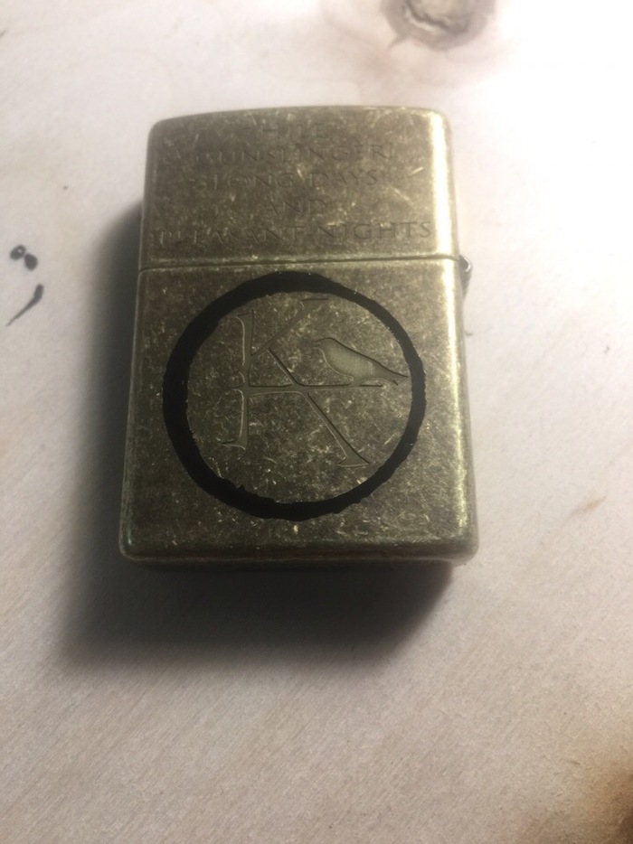 Всем привет! не так давно ко мне пришёл человек с идеей сделать свою zippo 201FB antique brass под тематику "Тёмной башни" Кинга.