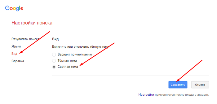 А ещё сегодня Гугл предложил перейти на Тёмную сторону тему на сайте, но она оказалась очень непривычной и что бы изменить* Тёмную тему на Светлую нужно ткнуть сюда: