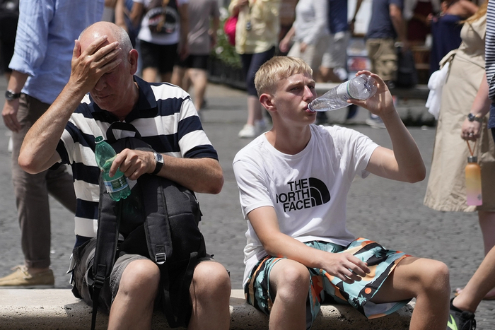 Туристы спасаются от жары у фонтана в Италии