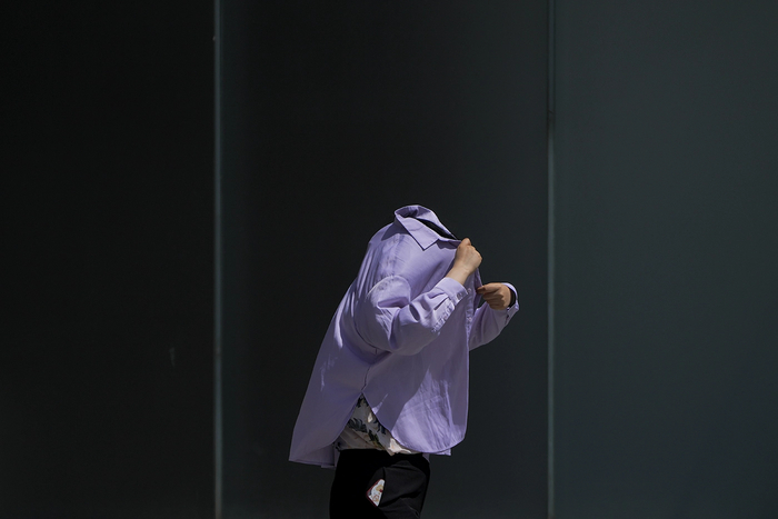 Женщина использует рубашку с длинными рукавами для защиты от солнца в Пекине. В Власти китайской столицы потребовали прекратить все работы на открытом воздухе. По прогнозам,температура достигнет 40 градусов по Цельсию