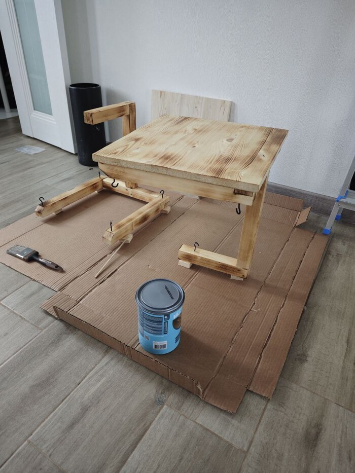 Столешница тоже из соснового мебельного щита 40*40см